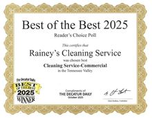 When you need a professional and established company to clean your commercial or industrial building, you can trust and count on Rainey's Cleaning Service. Local businesses throughout the Decatur, Athens, Hartselle, Huntsville, Cullman, and Moulton, AL areas have trusted us to keep their businesses clean since 1994, bringing over 30 years of experience to every job.